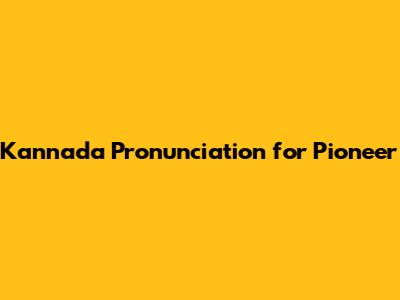 Kannada Pronunciation For Pioneer