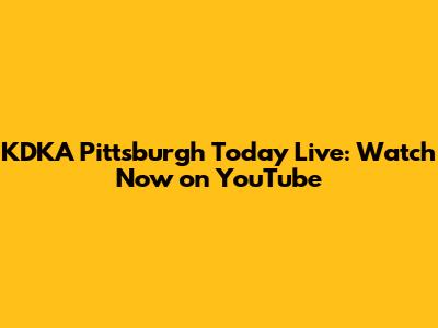 KDKA Pittsburgh Today Live: Watch Now On YouTube