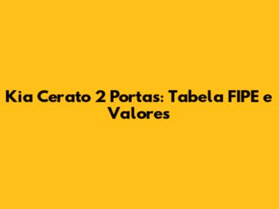 Kia Cerato 2 Portas: Tabela FIPE E Valores