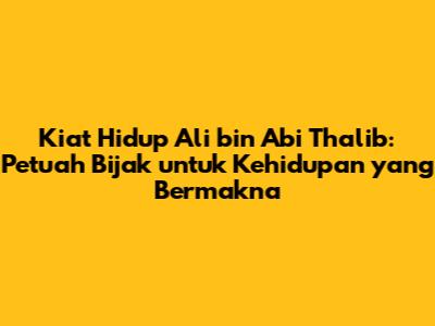Kiat Hidup Ali Bin Abi Thalib: Petuah Bijak Untuk Kehidupan Yang Bermakna