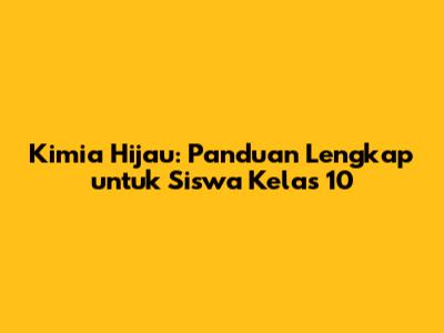 Kimia Hijau: Panduan Lengkap Untuk Siswa Kelas 10