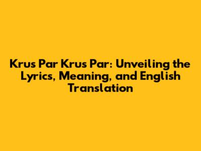 Hey music lovers! Ever found yourself humming along to a tune, totally vibing with it, but not quite sure what the lyrics actually mean? Well, today, we're diving deep into the world of "Krus Par Krus Par." This isn't just any song; it's a powerful piece that resonates with a lot of people. We're going to break down the lyrics, explore their meaning, and provide you with an English translation, so you can fully appreciate the beauty and depth of this song. So, grab your headphones, get comfy, and let's get started on this musical journey. We'll explore the history, the cultural impact, and the emotional resonance of "Krus Par Krus Par." Get ready to unlock a deeper understanding and appreciation for this incredible song. Understanding the lyrics can transform your listening experience, allowing you to connect with the music on a more profound level. Let's make sure everyone's on the same page and fully equipped to experience the song in all its glory.