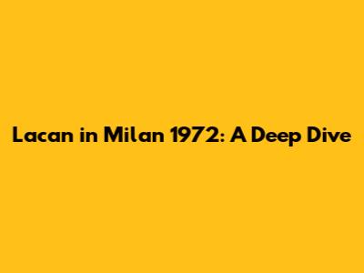 Lacan In Milan 1972: A Deep Dive