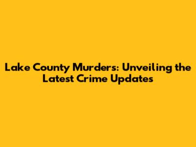 Lake County Murders: Unveiling The Latest Crime Updates