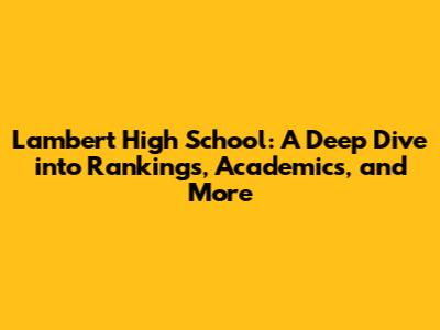 Lambert High School: Rankings, Academics, And More