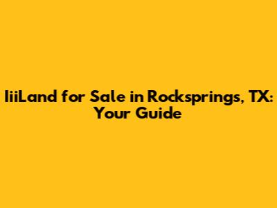 Hey guys! Are you dreaming of owning a piece of Texas? Maybe you're thinking about wide-open spaces, stunning sunsets, and that true feeling of freedom. If so, Rocksprings, Texas, might just be the place for you, and IiiLand could be your gateway to making that dream a reality. Let's dive into everything you need to know about finding IiiLand for sale in this beautiful part of the Lone Star State. We'll cover why Rocksprings is such a great place to invest, what to look for in a property, and how to navigate the buying process like a pro. So, grab your cowboy hat, and let's get started!