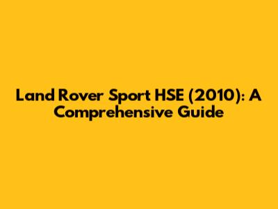 Land Rover Sport HSE (2010): A Comprehensive Guide