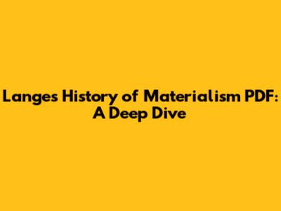 Lange's History Of Materialism PDF: A Deep Dive