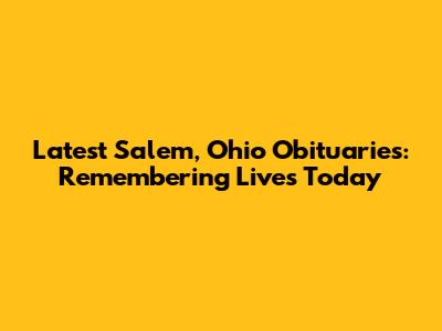Latest Salem, Ohio Obituaries - Find Recent Death Notices