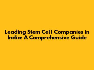 Top Stem Cell Companies in India: Who's Leading the Way?