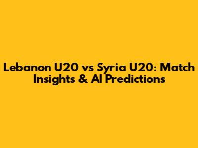 Lebanon U20 Vs Syria U20: Match Insights & AI Predictions