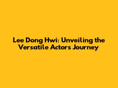 Lee Dong Hwi: Unveiling The Versatile Actor's Journey