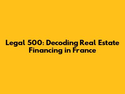 Legal 500: Decoding Real Estate Financing In France