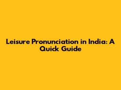Leisure Pronunciation In India: A Quick Guide
