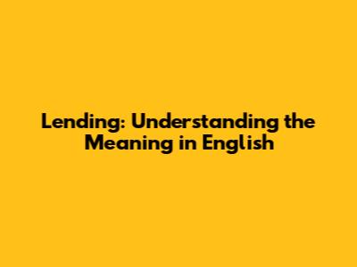 Lending: Understanding The Meaning In English