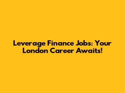 Leverage Finance Jobs: Your London Career Awaits!
