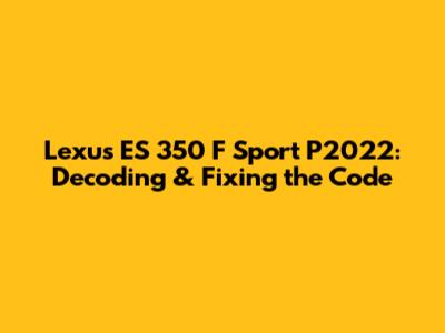 Lexus ES 350 F Sport P2022: Decoding & Fixing The Code