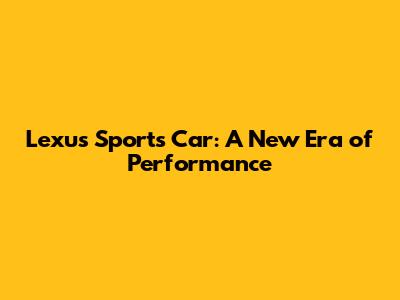 Lexus Sports Car: New Era Of Performance