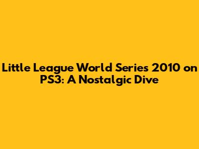 Little League World Series 2010 On PS3: A Nostalgic Review