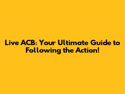 Live ACB: Your Ultimate Guide To Following The Action!