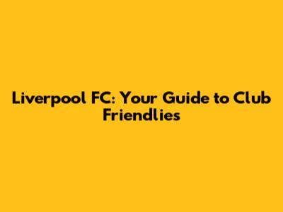 Liverpool FC: Your Guide To Club Friendlies