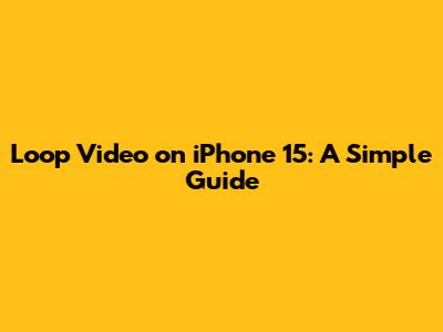 Loop Video On IPhone 15: A Simple Guide