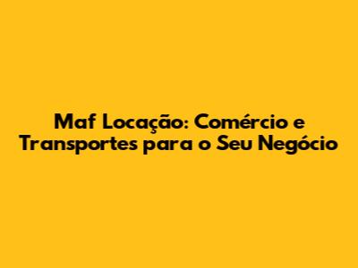 Maf Locação: Comércio E Transportes Para O Seu Negócio