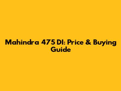 Mahindra 475 DI: Price & Buying Guide
