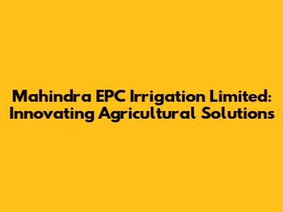 Hey guys! Ever wondered about the backbone of modern agriculture and how technology plays a pivotal role in ensuring efficient crop production? Let's dive into the world of Mahindra EPC Irrigation Limited, a key player in revolutionizing agricultural practices through innovative irrigation solutions. This article explores the company's history, its diverse range of products and services, its commitment to sustainability, and its impact on the agricultural sector. So, grab a cup of coffee, and let's get started!