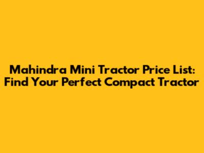 Mahindra Mini Tractor: Price & Models