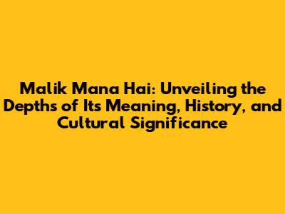 Malik Mana Hai: Meaning, History, And Cultural Significance