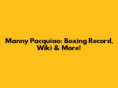 Manny Pacquiao: Boxing Record, Wiki & More!
