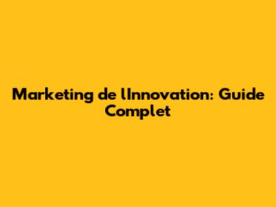 Marketing De L'Innovation: Guide Complet