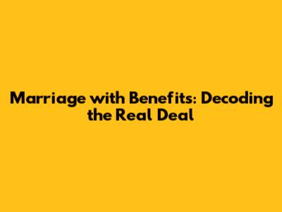Marriage With Benefits: Decoding The Real Deal