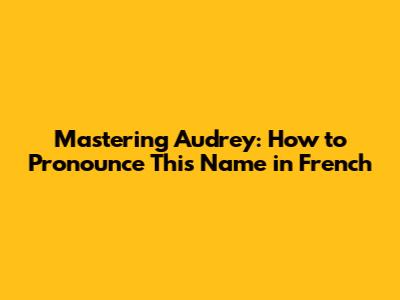 Mastering Audrey: How To Pronounce This Name In French