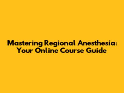 Mastering Regional Anesthesia: Online Course Guide