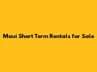 Maui Short Term Rentals For Sale: Your Island Investment!