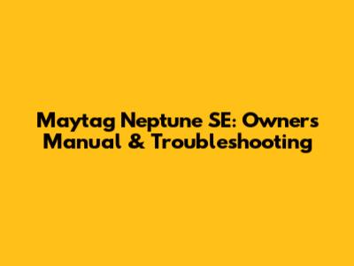 Maytag Neptune SE: Owner's Manual & Troubleshooting