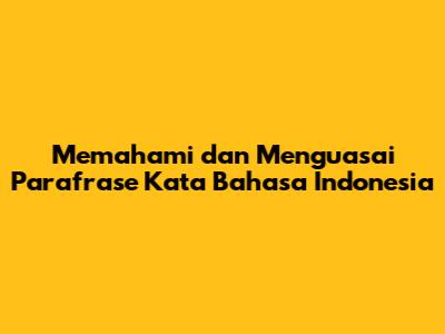 Memahami Dan Menguasai Parafrase Kata Bahasa Indonesia