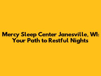 Mercy Sleep Center: Your Guide To Better Sleep In Janesville, WI