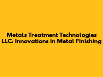 Metals Treatment Technologies LLC: Innovations In Metal Finishing