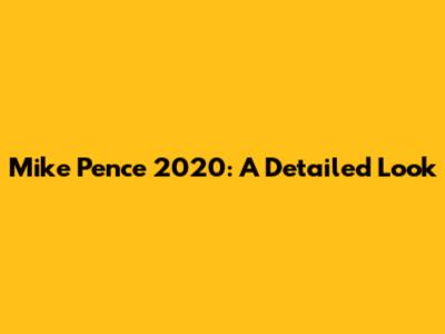 Mike Pence 2020: A Detailed Look
