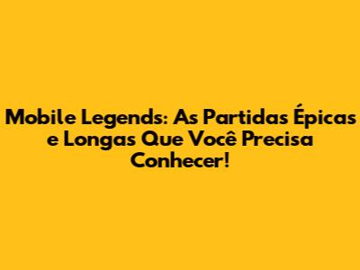 Mobile Legends: As Partidas Épicas E Longas Que Você Precisa Conhecer!