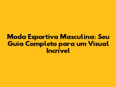 Moda Esportiva Masculina: Guia Completo Para Um Visual Impecável