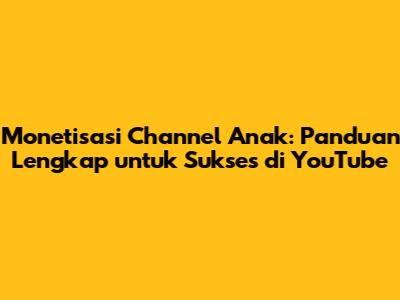 Apakah channel anak bisa dimonetisasi? Pertanyaan ini seringkali muncul di benak orang tua dan pembuat konten yang ingin memanfaatkan platform YouTube untuk anak-anak mereka. Jawabannya adalah ya, channel anak bisa dimonetisasi, tetapi ada beberapa hal penting yang perlu dipahami dan dipatuhi untuk memastikan keberhasilan dan kepatuhan terhadap kebijakan YouTube. Mari kita bahas secara mendalam mengenai seluk-beluk monetisasi channel anak, mulai dari persyaratan, tips, hingga strategi yang efektif.
