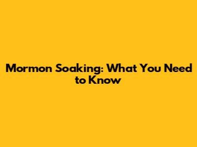 Mormon Soaking: What You Need To Know