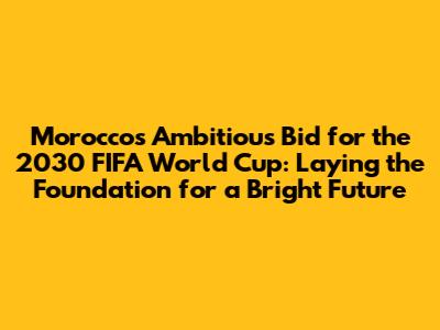 Morocco 2030 World Cup Bid: Building A Legacy