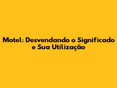 Motel: Desvendando O Significado E Sua Utilização