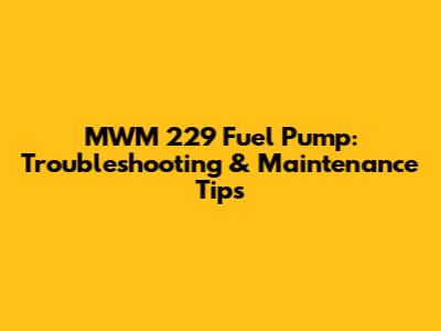 MWM 229 Fuel Pump: Troubleshooting & Maintenance Tips