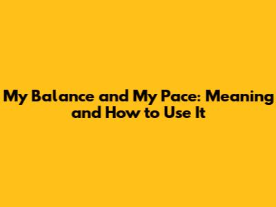 My Balance And My Pace: Meaning And How To Use It
